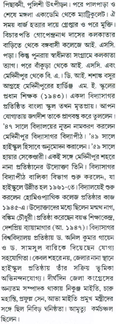Reference : MEDINIPUR CHARITABHIDHAN (Biographical dictionery on undivided Medinipur District) by Sri Manmatha Nath Das